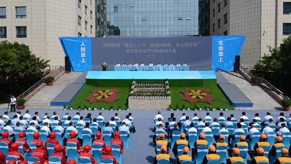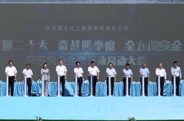 與會領導共同啟動陜煤集團“喜迎二十大、奮戰四季度、全力保安全”百日安全生產大行動。